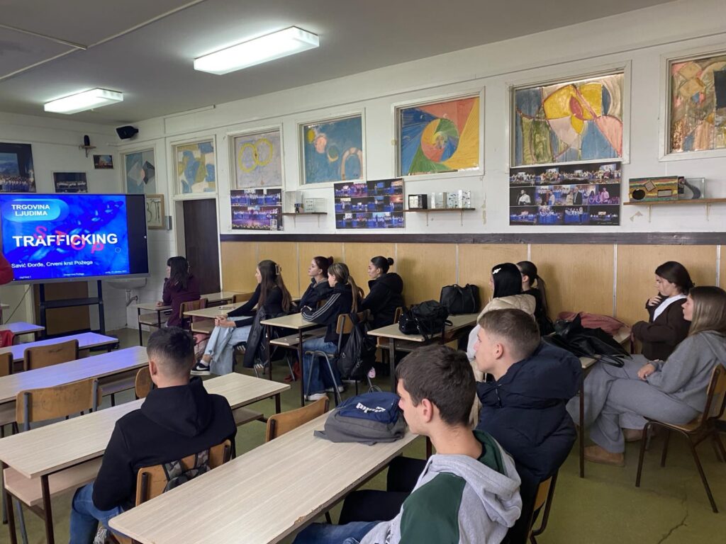 Ученици другог разреда имали су прилику да погледају колажне сцене које приказују профил жртве, врбовање жртава од стране трафиканата, фазе у процесу трговине људима, начине сурове експлоатације и врсте патње (физичко и психичко стање) кроз коју пролазе жртве. Ученици су научили како да препознају различите облике трафикинга, како да се одупру евентуалним ризичним ситуацијама, како држава помаже жртвама трговине људима. Пројекцијом пригодног филма ”Пинокио” на сликовит начин ученицима су приближени механизми функционисања модерног ропства, укључивања у ланац трговине и подлегања жртава (примамљиве понуде за посао, бољи материјални услови, ”достојанственији живот” у другој држави), као последице које са собом носи ова сурова али истинита појава у нашем животном окружењу.
