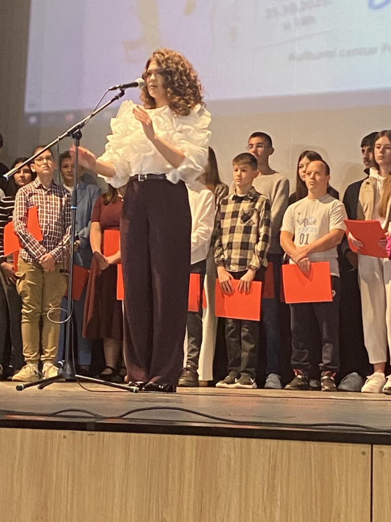 • Мају Међедовић – ученицу другог разреда гимназије, добитница другог места на републичком такмичењу Књижевна олимпијада 2024. и трећег места на Државном такмичењу талентованих ученика из књижевности 2025., а уједно и талентована флаутисткиња и чланица оркестра КУД-а „Први партизан“ Ужице.
