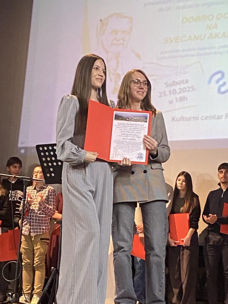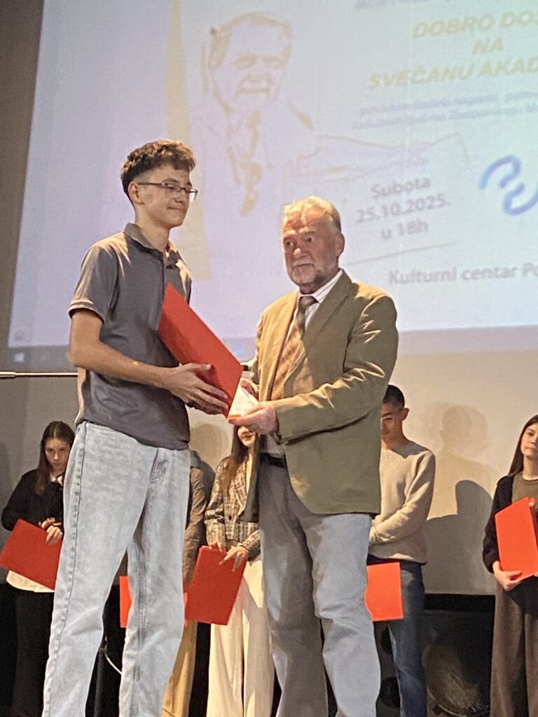 · Даниела Митрића – ученика другог разреда који се истакаo по изузетним резултатима на такмичењу из математике