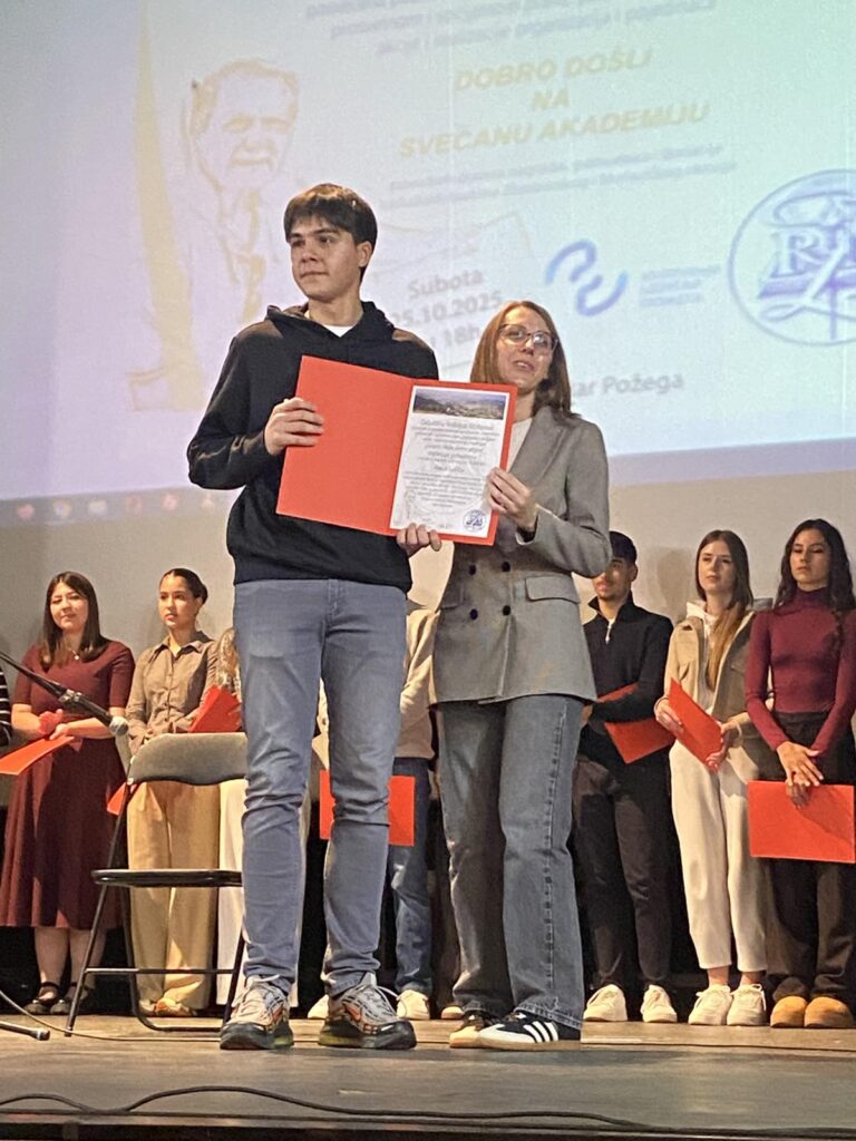 Када говоримо о младима који су будућност нашег града, о генерацијама које својим знањем, трудом и достојанством представљају Пожегу на најлепши начин, онда са посебним поносом истичемо ученике и професоре Гимназије „Свети Сава“. Ове године, гимназијалци су били најбројнији међу награђенима Задужбине „Родољуб Нићифоровић“, што је још једна потврда изузетног рада, посвећености и квалитета ове образовне установе. Њихови успеси нису плод случајности, већ дуготрајног залагања, одговорности и љубави према знању. Гимназија „Свети Сава“ одавно је престала да буде само школа – она је постала расадник талената, идеја и људских вредности. Задужбина је са поносом наградила следеће ученике Гимназије „Свети Сава“ Пожега: